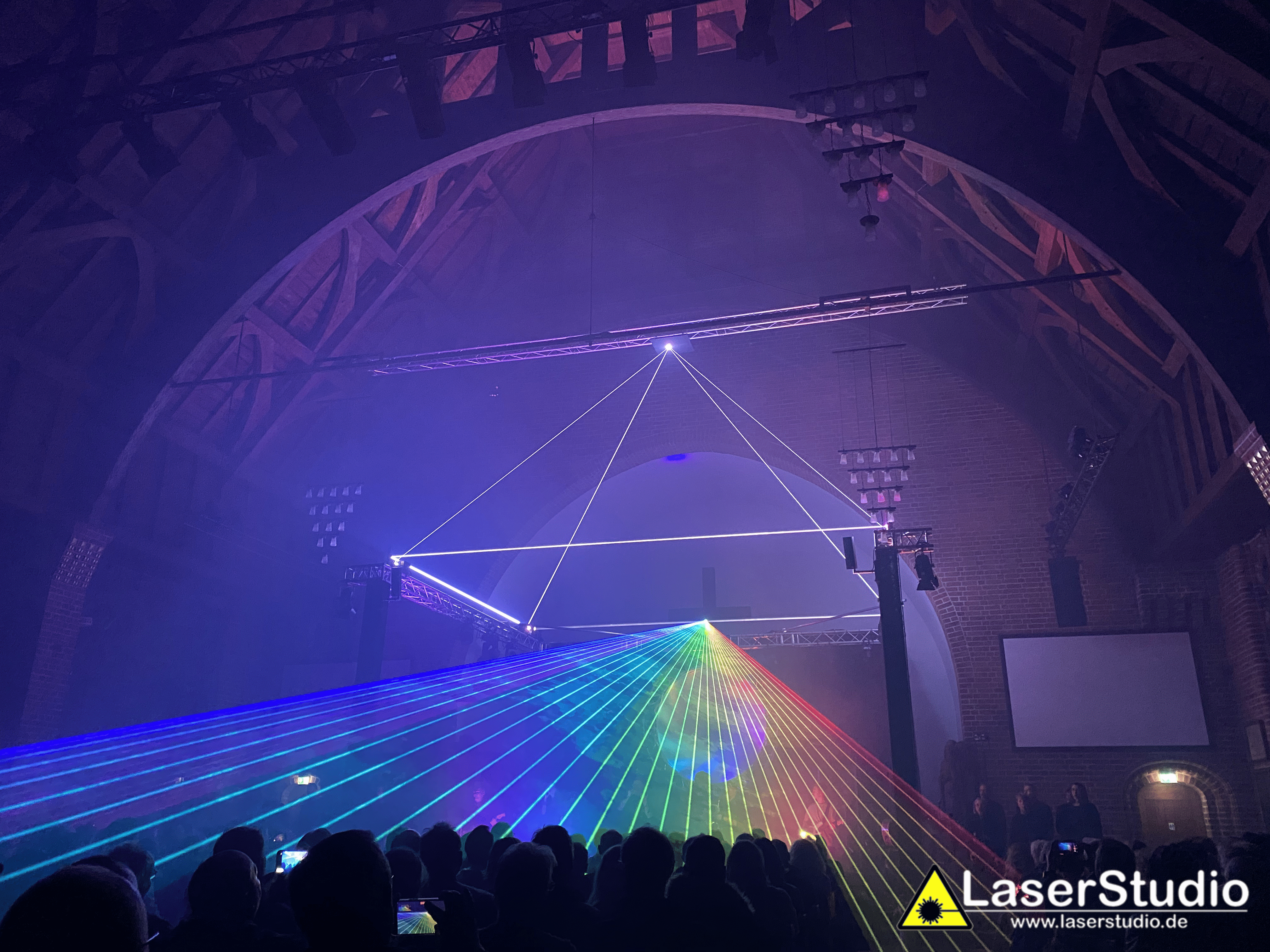 Es wurden auf dem Veranstaltungsgelände zwei riesige Bühnen aufgebaut, welche mit vier 7,5W RGB Laser bestückt waren.