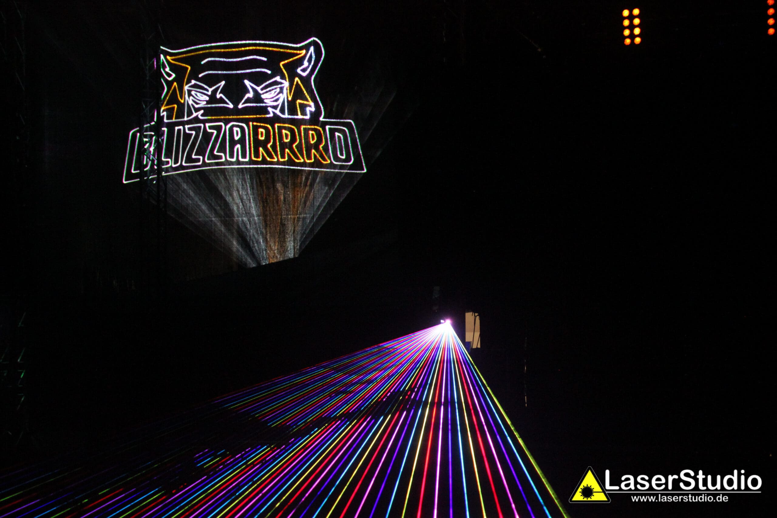 Es wurden auf dem Veranstaltungsgelände zwei riesige Bühnen aufgebaut, welche mit vier 7,5W RGB Laser bestückt waren.