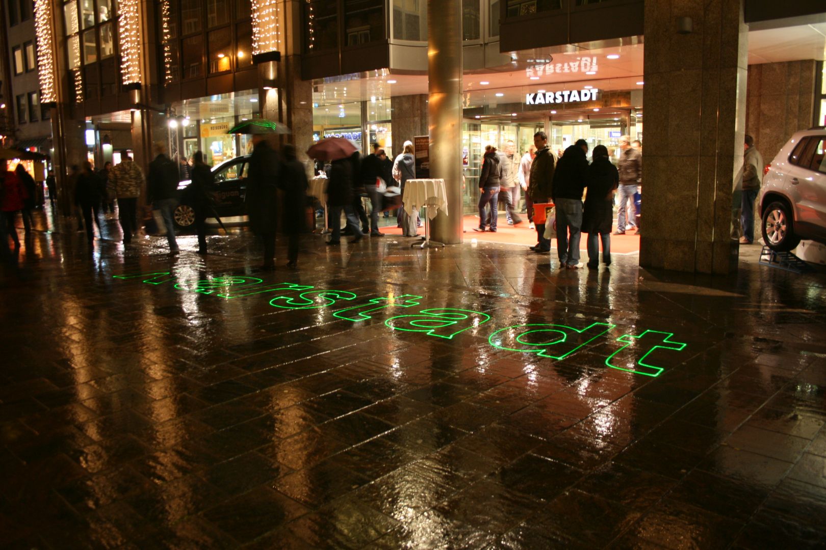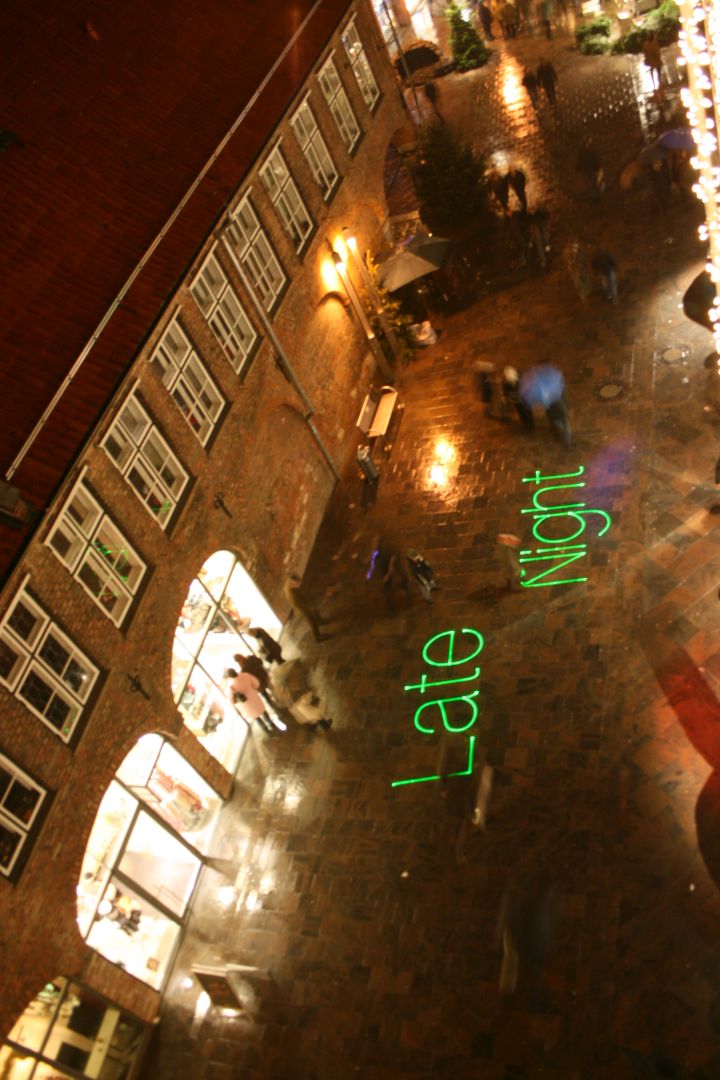Projektion von dem Dach der Karstadtfiliale auf die Königsstraße zum Late Night Shopping 2007 in Lübeck.